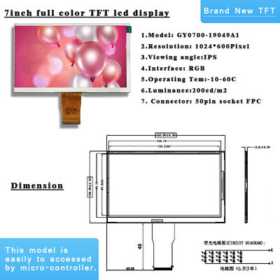| Resolution | 1024×600 pixels (RGB) |